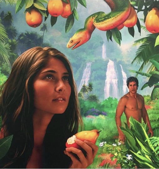 Satan prit la forme d’un serpent et entra dans le jardin d’Eden. Cet animal était une merveilleuse créature qui avait des ailes et qui, en plein vol, avait l’éclat de l’or poli. Il ne rampait pas sur le sol, mais volait cà et là et mangeait des fruits comme l’homme. Satan entra dans le serpent, prit position dans l’arbre de la connaissance, et commenca à manger tranquillement de son fruit.