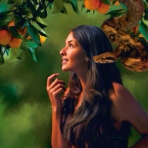 S’adressant à Eve, le tentateur affirma qu’aussitôt qu’elle mangerait le fruit, elle parviendrait à une sphère de connaissance plus élevée, ce qui la placerait sur un pied d’égalité avec Dieu. Attirant son attention sur lui-même, le serpent déclara qu’il mangeait librement du fruit de l’arbre, et que celui-ci était non seulement inoffensif, mais délicieux et stimulant. Il ajouta que c’était justement à cause de ses merveilleuses propriétés qui donnaient sagesse et puissance que le Seigneur leur avait interdit d’en manger, et même d’y toucher, car il en connaissait bien les vertus. Satan déclara que c’est après avoir mangé du fruit défendu qu’il avait acquis la faculté de parler. Selon lui, Dieu ne tiendrait pas parole. Ce n’était de sa part rien de plus qu’une menace destinée à les intimider et à les empêcher d’atteindre un niveau de bonheur plus élevé et une joie plus parfaite. Le diable cueillit alors un fruit, et le tendit à Eve qui le prit. “Eh bien, lui dit-il, ne vous avait-on pas interdit de le toucher, de peur que vous ne mourriez?” Il s’empressa d’ajouter qu’elle ne serait pas plus affectée par le mal et la mort pour l’avoir mangé qu’elle ne l’avait été pour l’avoir touché de sa main. Eve s’enhardit parce qu’elle ne sentit pas immédiatement les signes du déplaisir divin. Trouvant que les paroles du tentateur étaient justes et sensées, elle mangea du fruit. Son goût lui parut excellent, et elle crut en ressentir déjà les effets merveilleux.